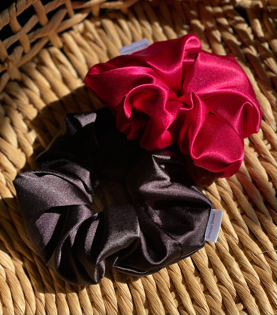 Most of my large & XL scrunchies are sewn using a method that allows the elastic to move freely in the scrunchie so you can fluff and move fabric where you like, No restrictions.